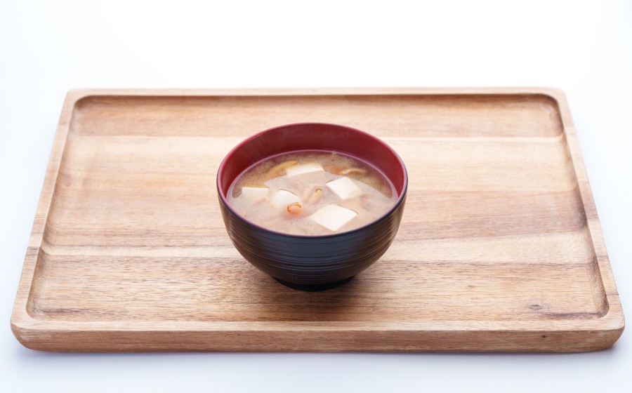 お味噌は信州の⽩味噌を使⽤。出汁の⾹りが⿐に抜ける、⾃慢のお味噌汁です!
